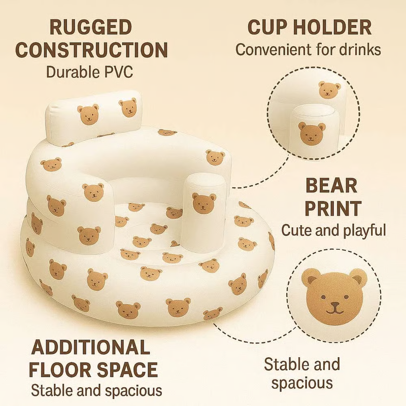 It is lightweight and portable, making it perfect for on-the-go families. It easily inflates and deflates, allowing you to bring comfort and support wherever you go, without the hassle of heavy seats.