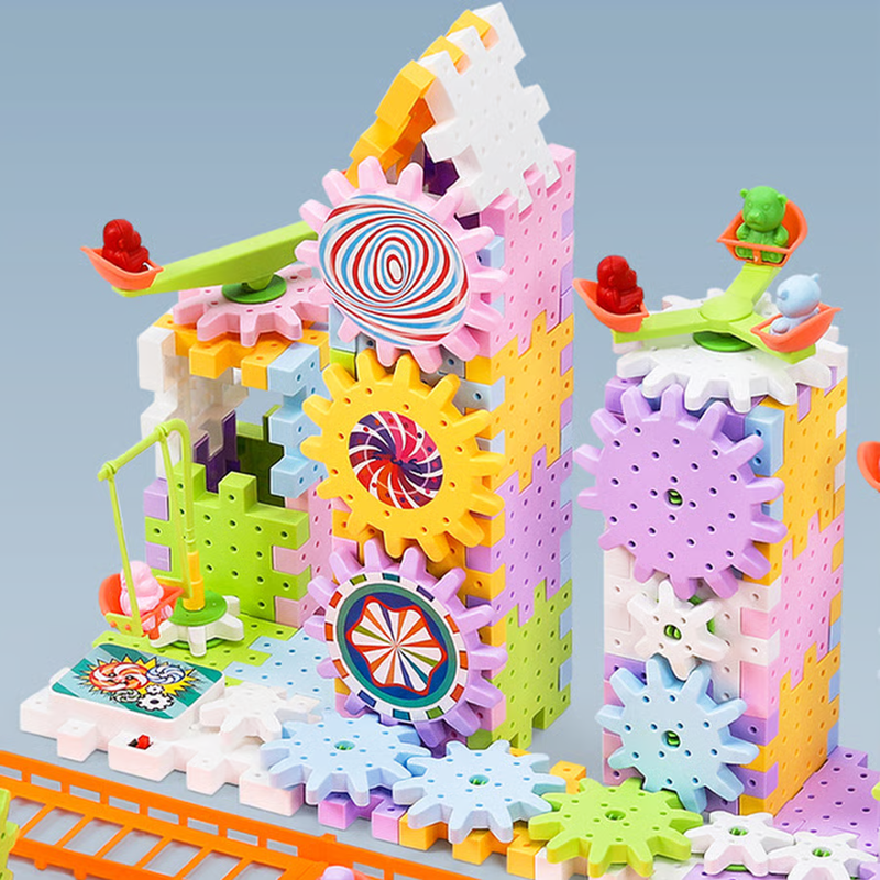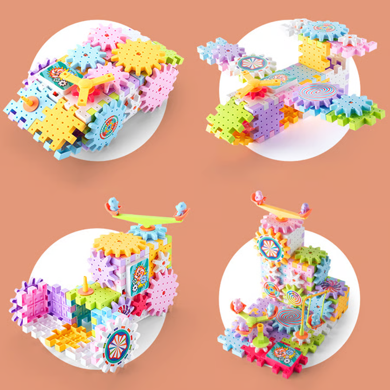 This fun shaped jigsaw puzzle type interlocking building blocks, motorized spinning gears construction set will help your children use their brain and develop important problem-solving skills, logic, and motor skills!