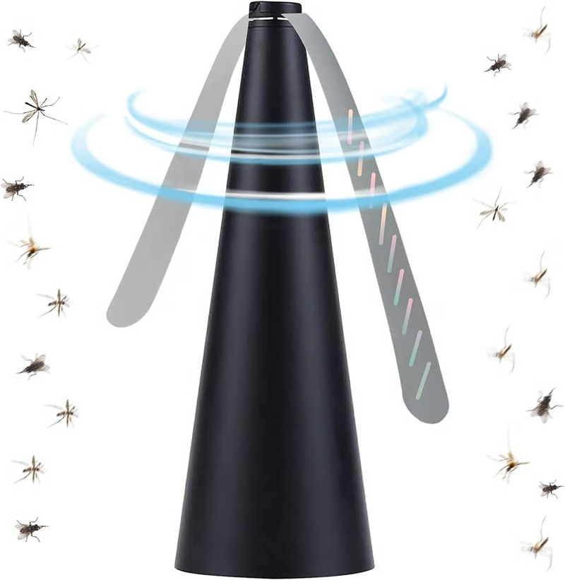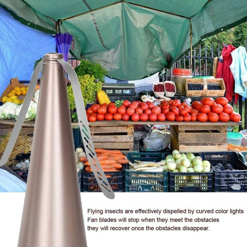 When switched on, the fan blades rotate gently, and the light-reflective design confuses insects. They naturally fly away from the area. It’s not harmful, just an effective deterrent based on their visual instincts.